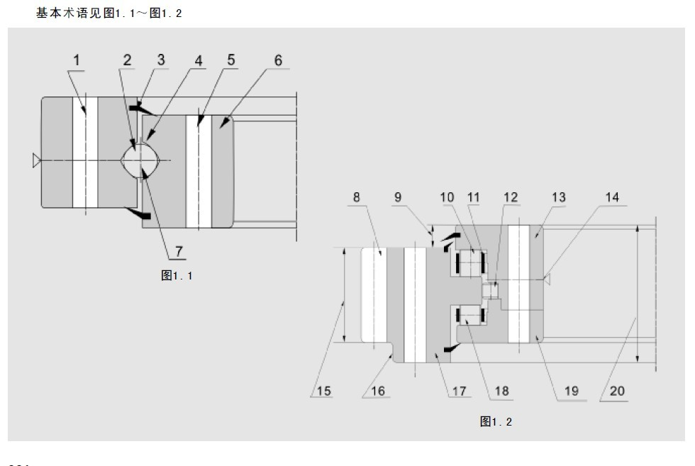 四點接觸球轉盤軸承,見圖1.3~圖1.5;
